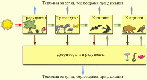 Следовательно, живое вещество (биота) — продуценты, консументы и редуценты — образовали цепь питания (трофическая цепь), которая через безжизненное вещество — минеральные соединения — замкнулся в круг, и таким образом произошла эволюция биосферы.